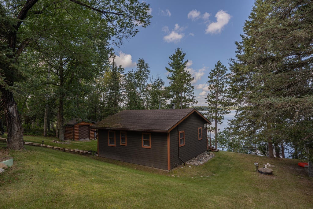 Escape to this seasonal two-bedroom cabin with 100 feet of west-facing shoreline on Wabedo Lake, which connects to Little Boy Lake for endless boating and fishing. The open living space features knotty pine walls, a wood-burning fireplace, and a kitchen with a peninsula for casual meals. Sliding doors lead to a deck with sweeping views of the lake and a nearby island, perfect for watching golden sunsets over the water. The property includes a concrete slab ready for a future garage or toy storage, plus a shed for extra gear. This inviting cabin offers an easy, comfortable place to slow down, enjoy the lake, and soak in some of the best sunset views in the area.